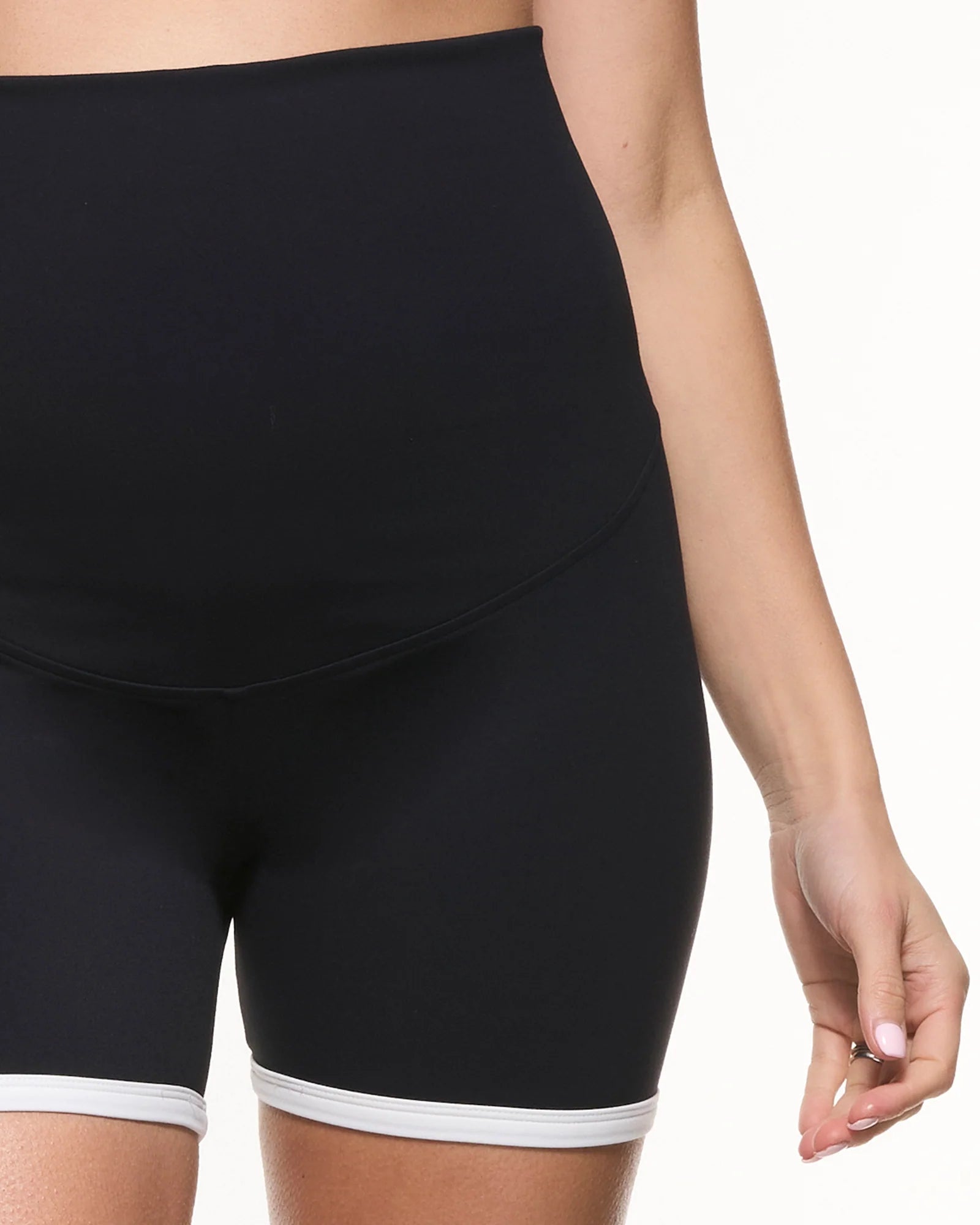 Move freely in our Two Tone Biker Shorts, crafted in ultra-soft, four-way stretch fabric that adapts with your changing body. The contrast white trim adds a sporty edge, while our signature double-layered overbelly waistband offers gentle support during pregnancy and can be folded down for a comfortable postpartum fit. Designed for performance, comfort, and everyday style!