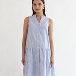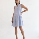 Effortlessly cool, our Melanie Sleeveless Dress is a fresh take on a classic shirt dress. With a full button down front, also making it ideal for breastfeeding, it has a drop waist and full skirt. Crafted in a linen and cotton blend, meaning it’s breathable and will keep you cool on those warm summer days, this is a dress that will be on repeat this season.