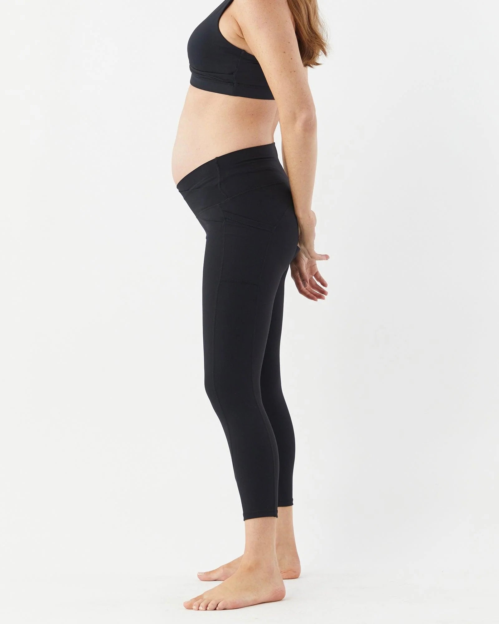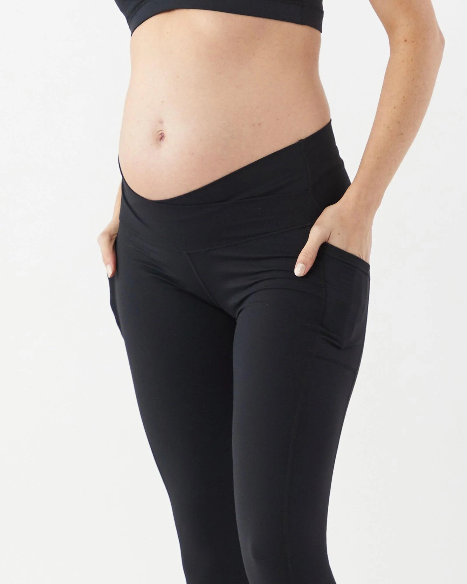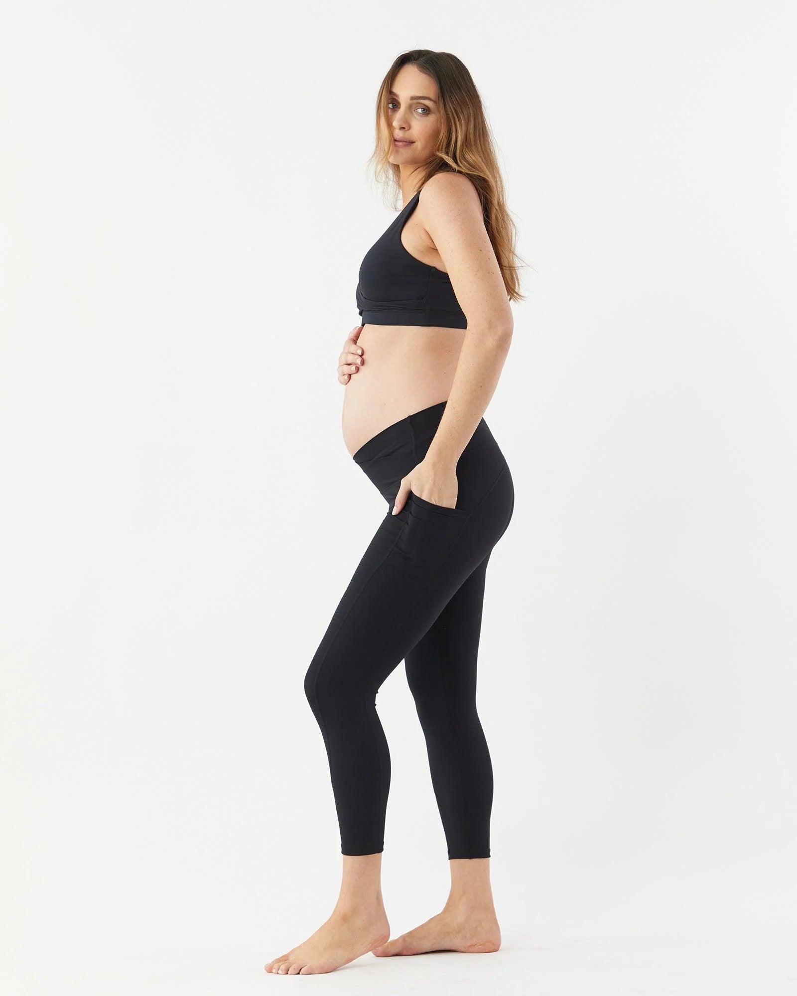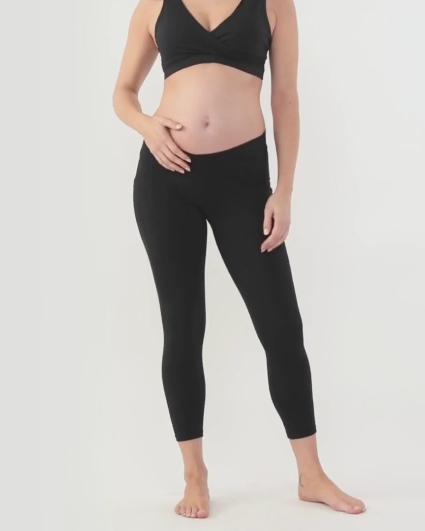 Our Active Side Pocket 7/8 Leggings will be a favourite in your maternity wardrobe. Whether you’re doing Pilates, prenatal / postnatal yoga or simply out and about running errands, these are the leggings for you. They have a soft cross over waistband that sits comfortably under the belly and a side pocket to slip essentials like your phone or credit card into.