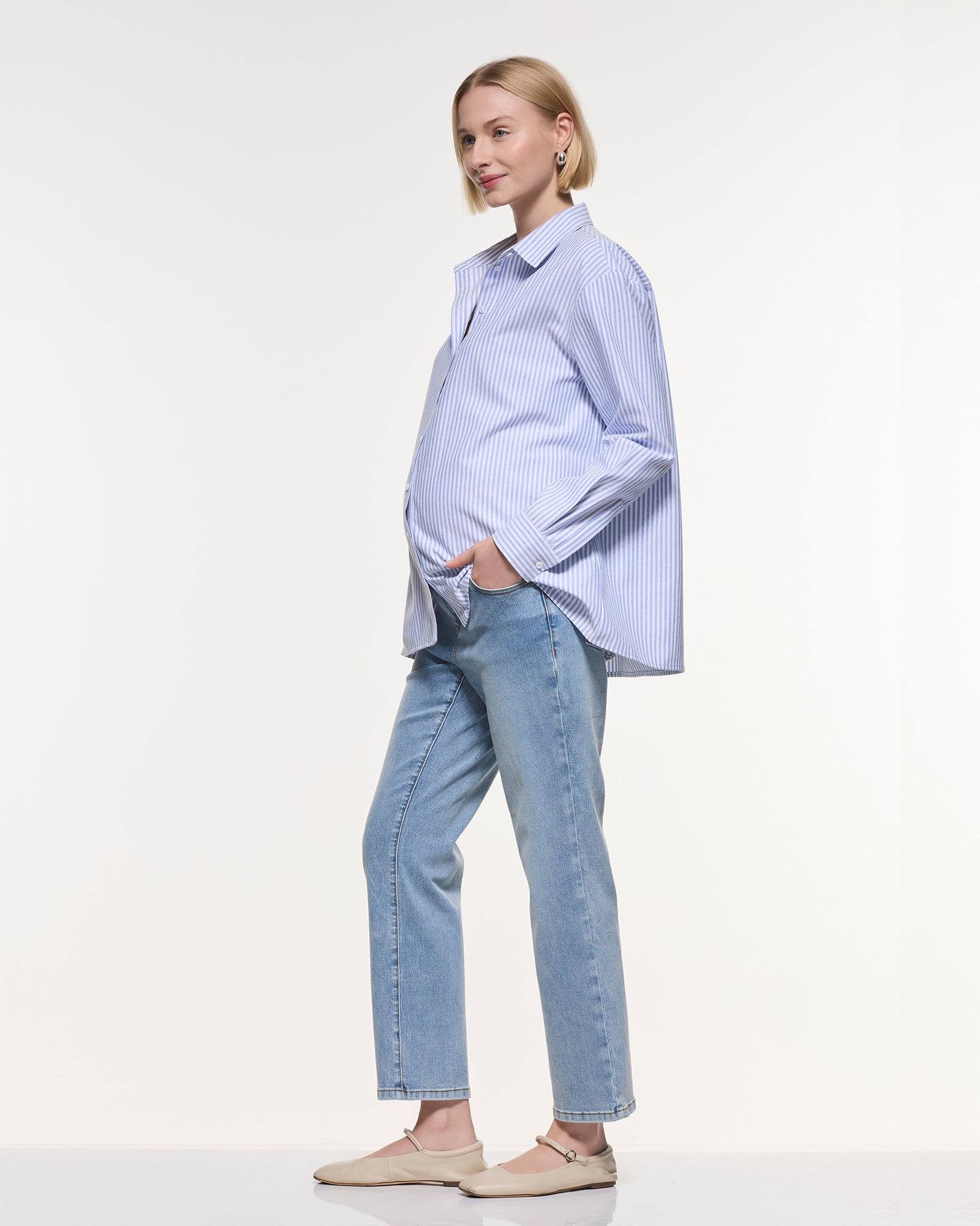 Crafted in an incredibly soft denim with the perfect amount of stretch, our Heaven Slim Overbelly Jeans have a sleek slim leg silhouette which is extremely flattering on every mama. Our signature four way stretch overbelly waistband adds extra support which can also be folded over and worn under your bump, and they feature a classic 5 pocket design. The ideal addition to your denim collection!