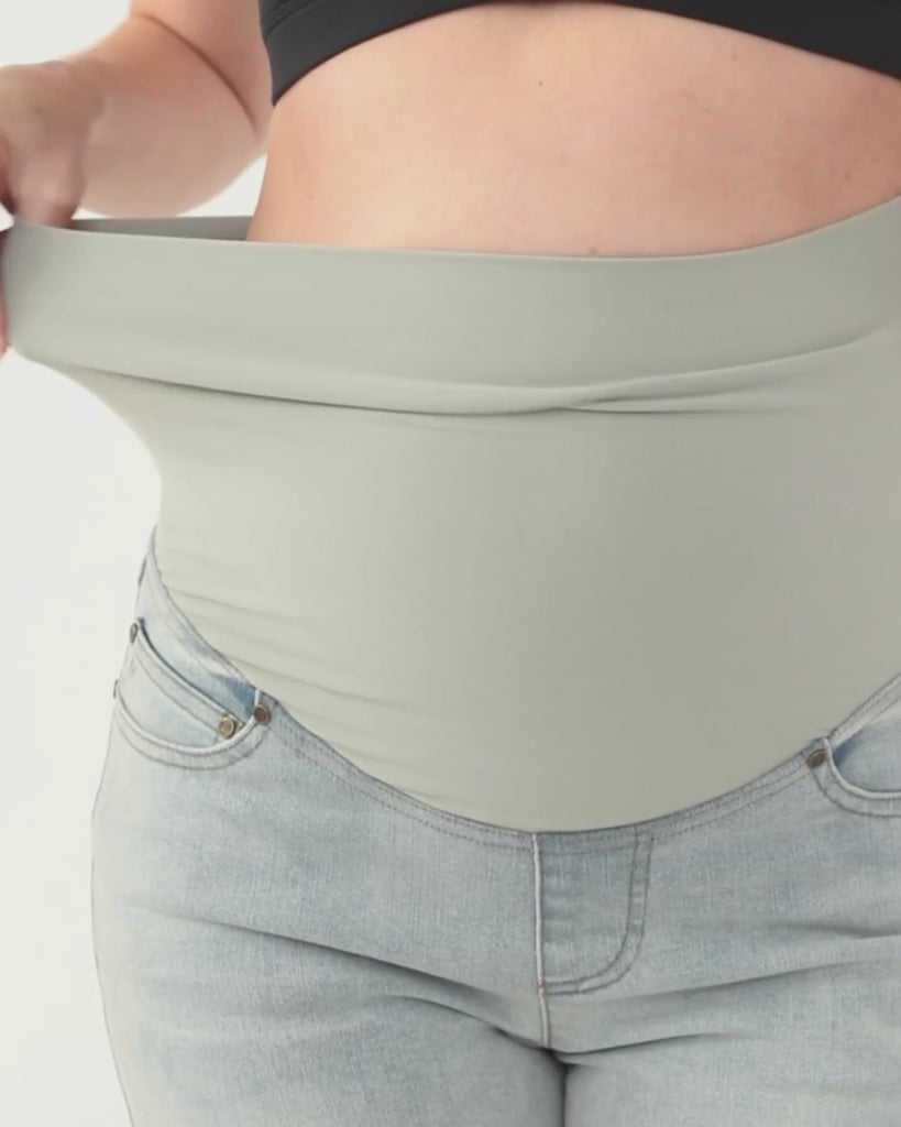 Start with your pre-pregnancy size as a guide — our pieces are made to stretch, move, and grow with you through every stage.