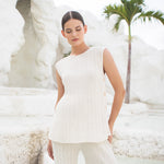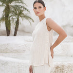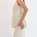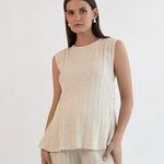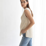 A beautiful tunic style top crafted in a luxe rib knit, linen blend fabric. The Collette Linen Knit Feeding Tank is designed to be worn through all trimesters, into nursing and loved well after. It has a classic round neckline and chic three button design down either side for quick and discreet breastfeeding. Pair it with the matching Collette Linen Knit Pants for an on-trend and effortless summer look.