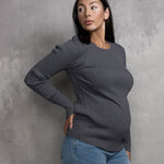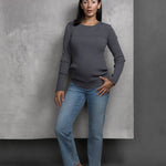 Crafted in a luxe crepe knit, the 2-way Sleeve Feeding Top is a very versatile piece to add to your wardrobe as it’s two different looks in one! Keep the buttoned sleeve attached for an on-trend look or remove it for a polished ¾ sleeve style. The fabric is stretchy to grow with you and will then keep its shape to wear well after your pregnancy and it features hidden side zips for discreet breastfeeding.